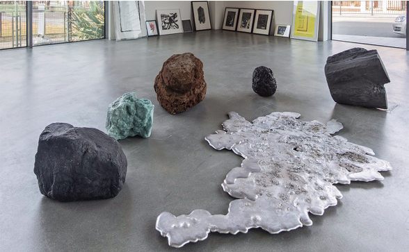 As part of Liverpool Biennial 2018 (July – October 2018) Paul Elliman presents Vauxhall Astra 2020 (2018), the forthcoming and newest model of a car available since 1979 when General Motors launched the Vauxhall/Opel Astra, now the only car produced at Ellesmere Port. Vauxhall Astra 2020 is offered as a constellation of raw materials, half-a-dozen boulders and rock-like lumps of the car’s constituent parts at original scale, made of steel (iron ore), glass, plastic, aluminium, rubber and electrical components.